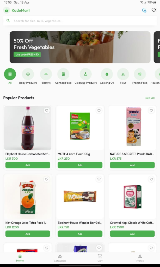 Local grocery retail in Sri Lanka often struggles with manual order processing, non-existent inventory tracking, and slow response times. The goal for KadeMart was to build a solution that was: